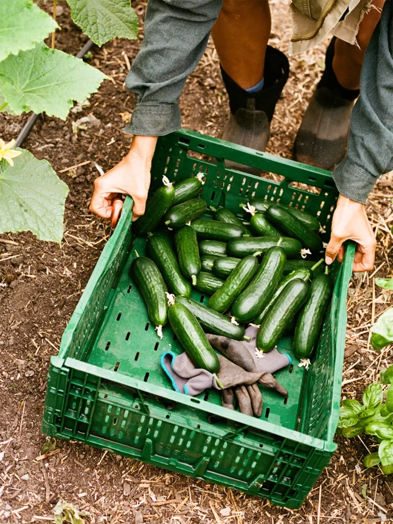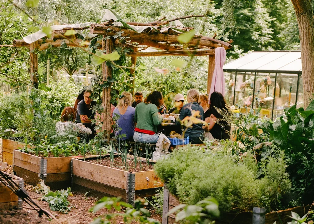 โครงการปั่นจักรยาน 10 นาทีจากออสดอร์ป ซึ่งเป็นโครงการริเริ่มแรกของโดเฮอร์ตีที่ชื่อว่า Pluk! กำลังเฟื่องฟู การสมัครสมาชิกรายปีตามรายได้ช่วยให้คุณเก็บเกี่ยวผัก สมุนไพร และดอกไม้ได้เอง ช่วยให้เกษตรกรมีรายได้ขั้นต่ำอย่างน้อย 18 ยูโรต่อชั่วโมง เราได้ร่วมกิจกรรมกับเจเนวีฟ ออสบอร์น นักเต้นที่ผันตัวมาเป็นนักทำสวน ขณะที่เธอกำลังตัดแต่งแตงกวา กระแสที่กำลังมาแรง “ผู้คนมาที่นี่เพื่อเปลี่ยนแปลงวิถีชีวิต” เธอกล่าว “เราได้พบกับผู้ที่กำลังเผชิญกับภาวะหมดไฟ นักเคลื่อนไหว และครอบครัวหนุ่มสาวที่ต้องการให้ลูกๆ ของพวกเขาได้กินผักที่ปลูกเอง และแสดงให้พวกเขาเห็นว่ามันเกิดขึ้นได้อย่างไร”