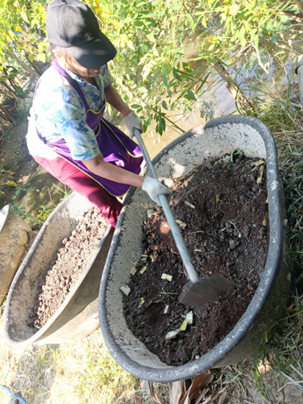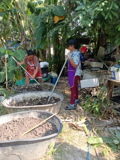ในส่วนของชุมชนภูมิใจ สมาชิกชาวสวนผักที่มีกัน 11 รายก็ต้องจัดการแปลงกันใหม่ เนื่องจากดินเดิมผ่านการใช้งานมาหลายรอบจนอินทรีย์วัตถุเริ่มหมด จนให้ผลผลิตได้ไม่ดีเท่าในช่วงระยะแรกที่เริ่มปลูกเมื่อฤดูหนาวปีที่แล้ว ทั้งนี้ สำหรับบางคนที่ดำเนินการหมักดินและเพาะกล้ามาก่อนแล้ว จึงเริ่มนำต้นอ่อนลงแปลงได้ แต่บางคนก็ยังอยู่ระหว่างพยายามเก็บรวบรวมเศษใบไม้เพื่อนำมาใช้เป็นวัสดุหมักดินและคลุมแปลง